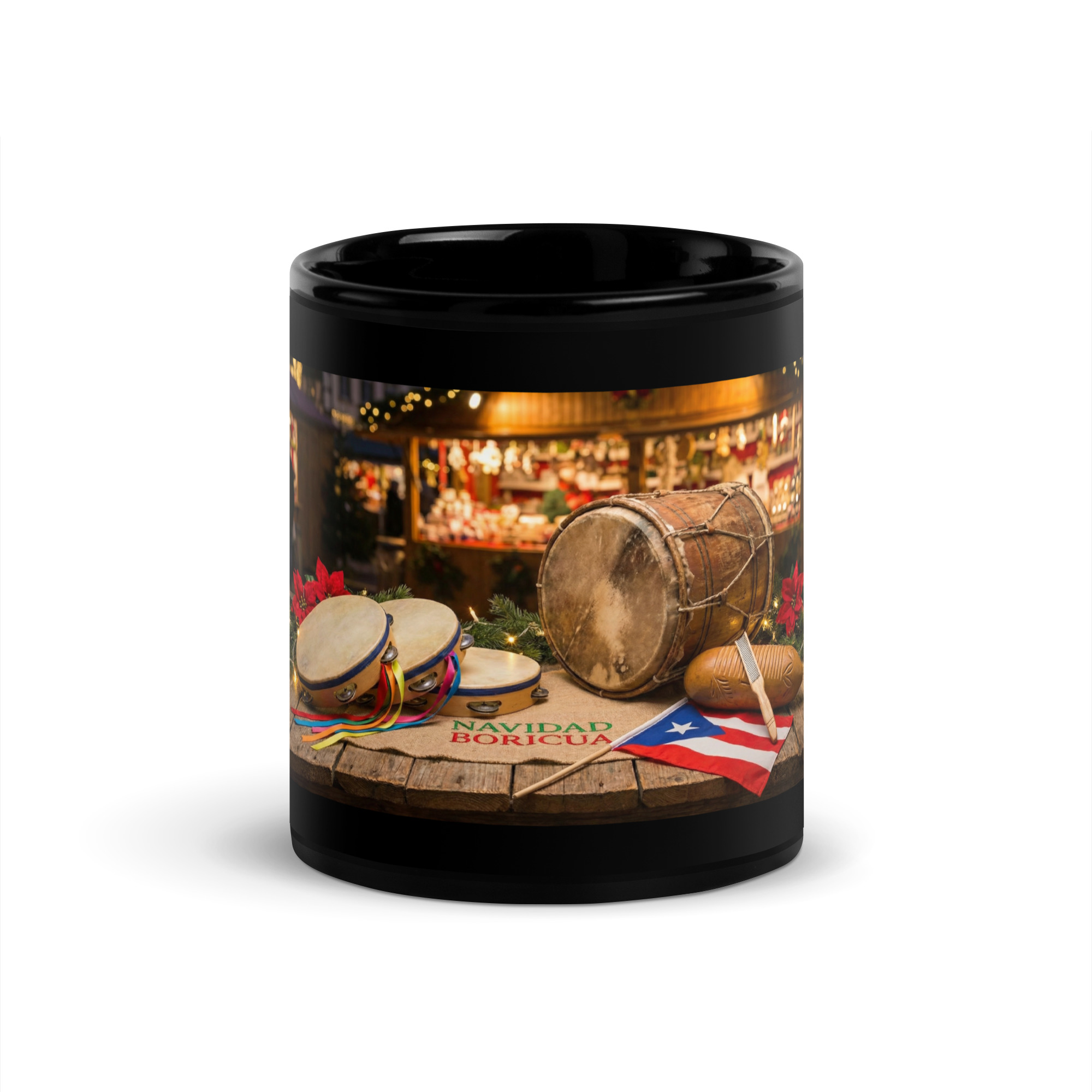 Black Glossy Mug Puerto Rican Christmass Instruments